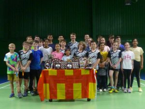 The County Junior Squads held their annual presentation “do” yesterday at TBC. This was preceded by 90 minutes of fun games of badminton, table tennis and the new sport (to most of them) pickleball. It was good to see many parents joining in too.