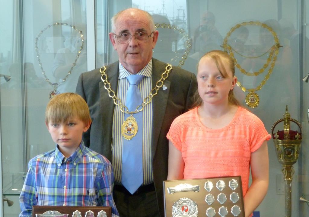 Two of Northumberland’s talented young badminton stars have recently been presented with awards by the Chair of North Tyneside Council, Councillor Mulvenna. The awards for the Most Promising Under 12 Boy and Girl Badminton Players in Northumberland were established in 2003 by Councillor John Carter: at that time he was the Chair of North Tyneside Council and had become a great fan of badminton during his time in office, partly through the Council’s wonderful support for our Under 19 tournament. The awards have continued to be presented each year at a ceremony hosted by North Tyneside Council.